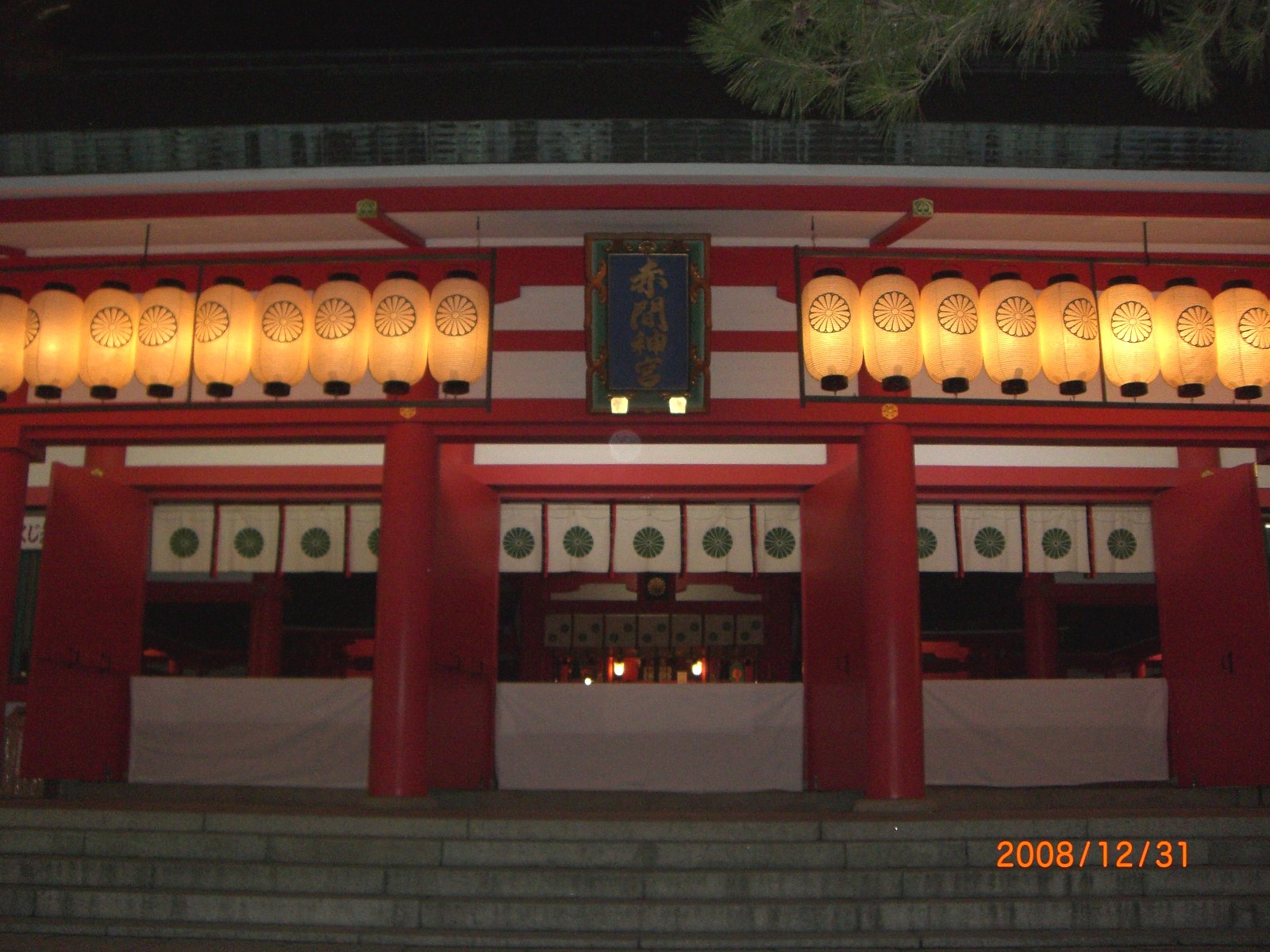 大晦日22時過ぎから赤間神宮境内に参集、参拝者に振舞うお餅をつき始め、深夜2時過ぎまで接待に当たりました。