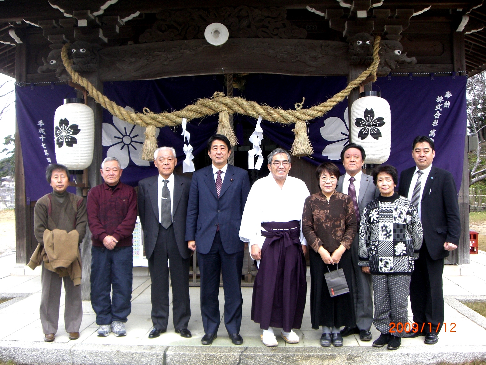 自由民主党幹事長時代に次ぎ久しぶりに御参拝頂きました。安倍代議士は、内閣不支持率が70%を超えたとの報道と年度末迄更に経 済環境が厳しくなるとの認識から皆さんと手を携えて行きましょうと話されました。
