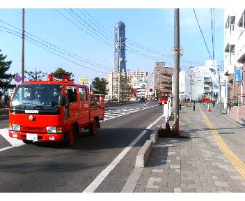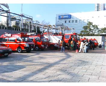 会場となったメッセ・夢広場周辺では 親子ずれで消防機材と触れ合ったり振舞われる≪ぜんざい≫に舌づつみを打ったり賑わいました。