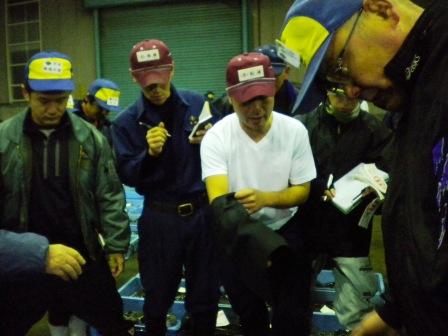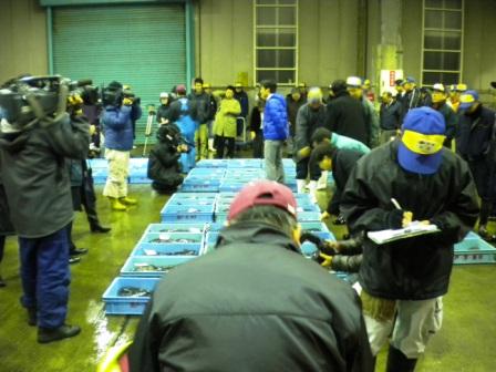 午前三時、来賓・関係者相集い恒例の初競りが行われました。