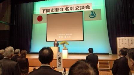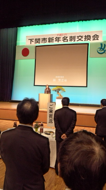 来賓挨拶で安倍元総理は、『本日は≪ふく≫の初競りでした。従来韓国との間で「統計129度以東は日本側漁船が操業する旨の協定を結んでいたが、今回韓国がこれを破棄。」日本の排他的水域でも安全操業が担保出来ない状況となった。』 として民主党政権下で又一つ国益が失われる事態となったこと。『壬辰の今年は国外でもトップリーダー選挙が行われる年。国内においても国政選挙可能性がある。』との見解を述べられた。又、『24年度予算には19兆円の公共事業が盛り込まれているが、震災地が先ず優先。下関市への配慮述べられた。