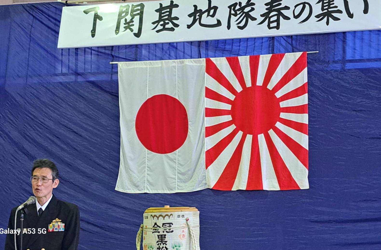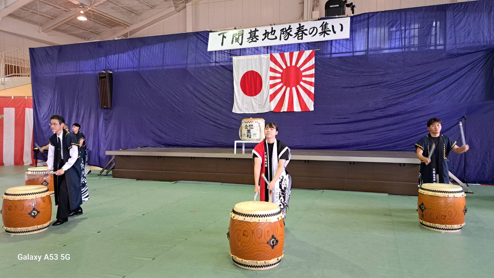 関門太鼓の演奏に始まり、自ら先頭に立って太鼓を披露された基地隊司令は挨拶の中で、