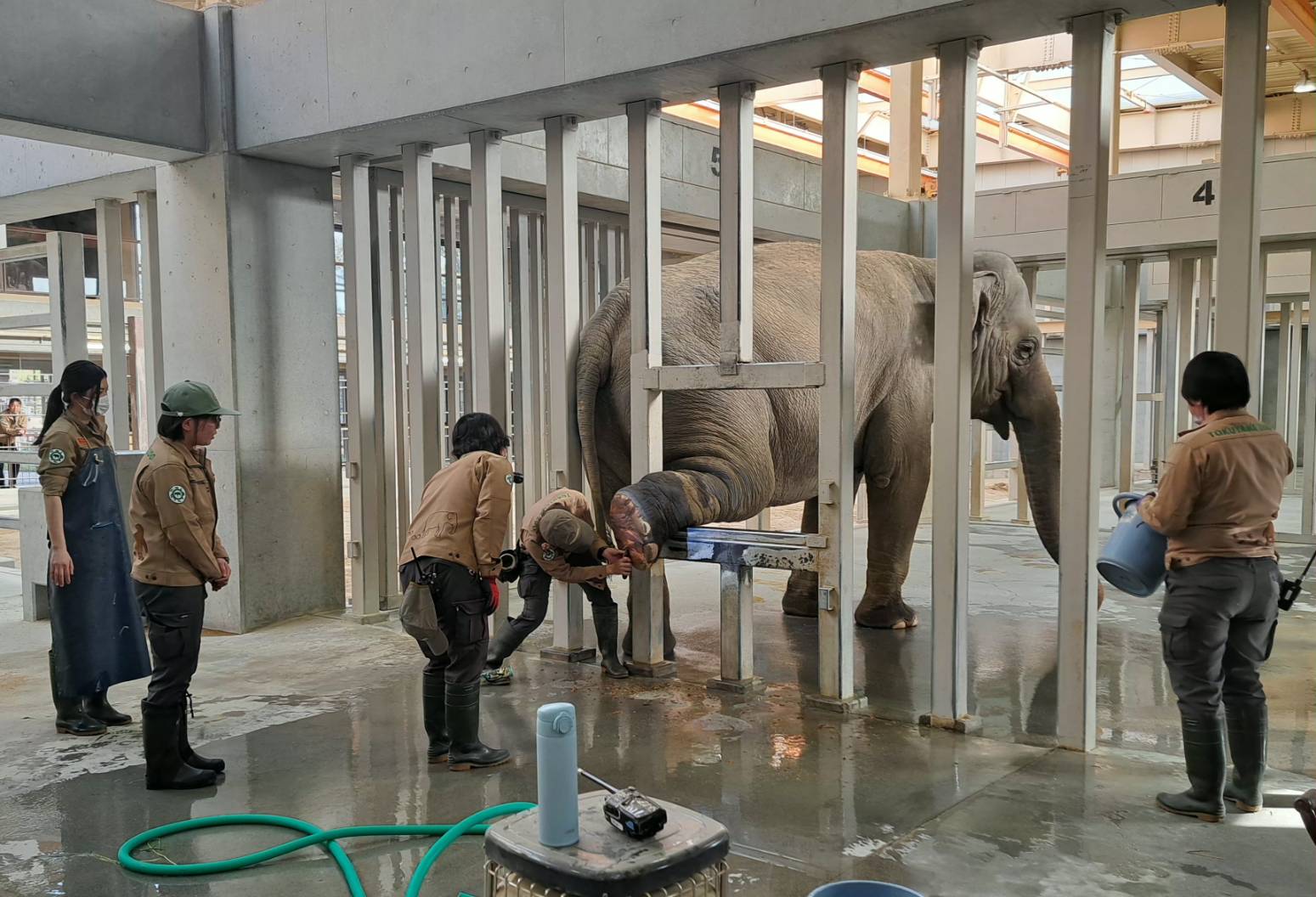 像に対する愛着が強く、現在スリランカ像が飼養されていますが、その自重故足の負担が大きく足のケアが大切とのこと、訪問時その様子を拝見しました。