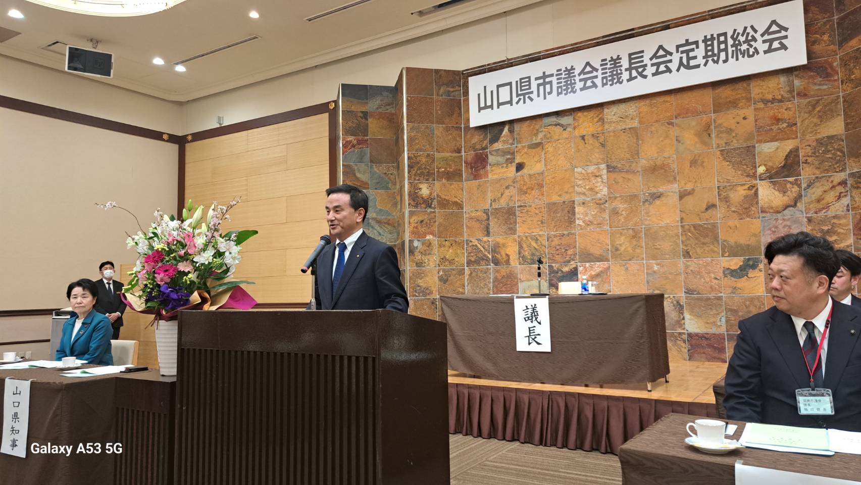 同日、山口県市議会議長会が周南市において開催され参加。山口県知事並びに地元藤井市長参列にもと、総会・情報交換会滞りなく納められました。