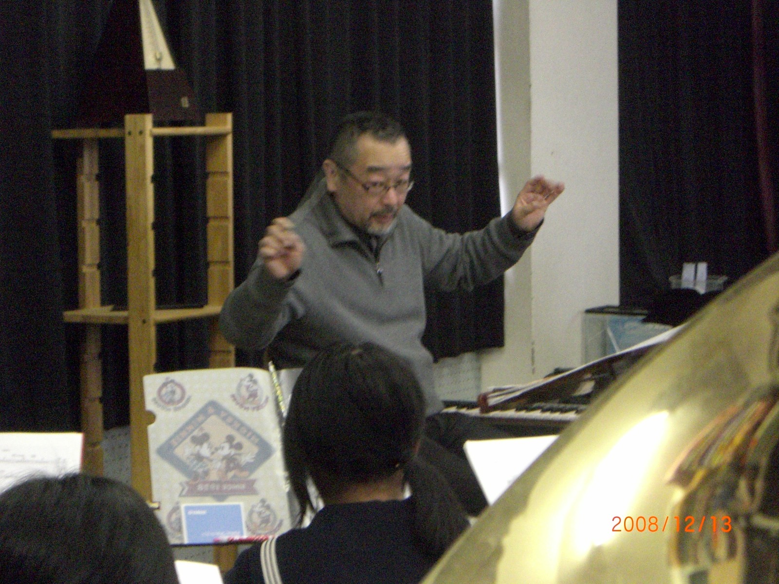 演奏会(12/28)間近に控え、熱のこもった練習が続きます。「技術は直ぐには伸びないが、良い音を、作曲家の意図を表現しようという熱意が音楽を創り上げる!」と楽団員に檄が飛びます。