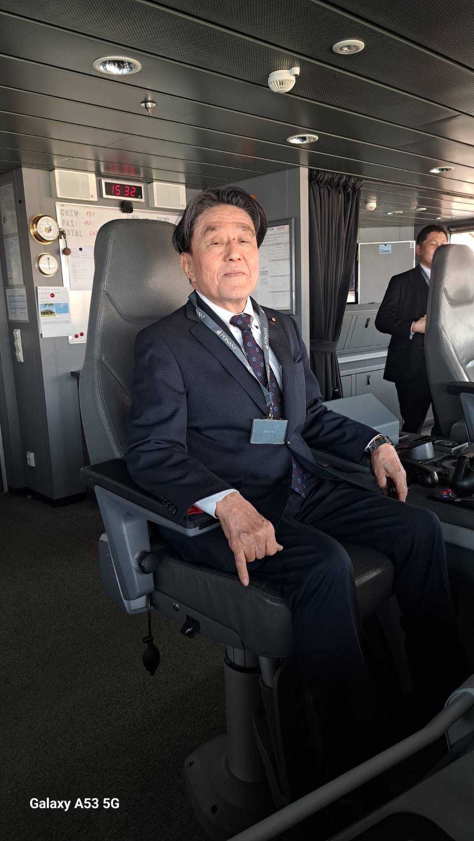 初寄港故、歓迎式に参列させて頂きました。今回の航海は 那覇港を振り出しに喜界島~屋久島~甑島~壱岐島~済州島を経て下関、出航後は宮島~尾道~神戸を目指す14日間のクルーズ旅とのことでした。当日の乗客は147名その内100名がフランス国籍の皆様とのことでした。