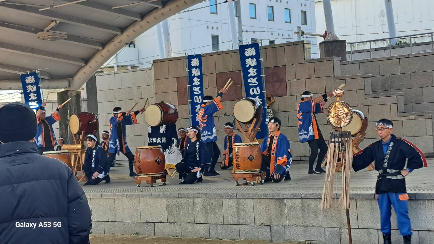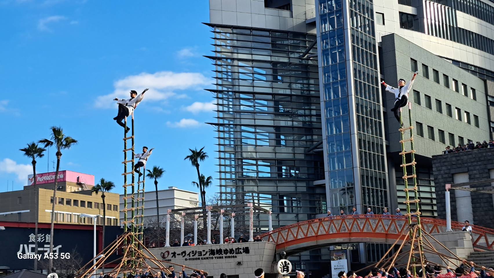 海峡まとい太鼓・梯子乗り披露と続きました。