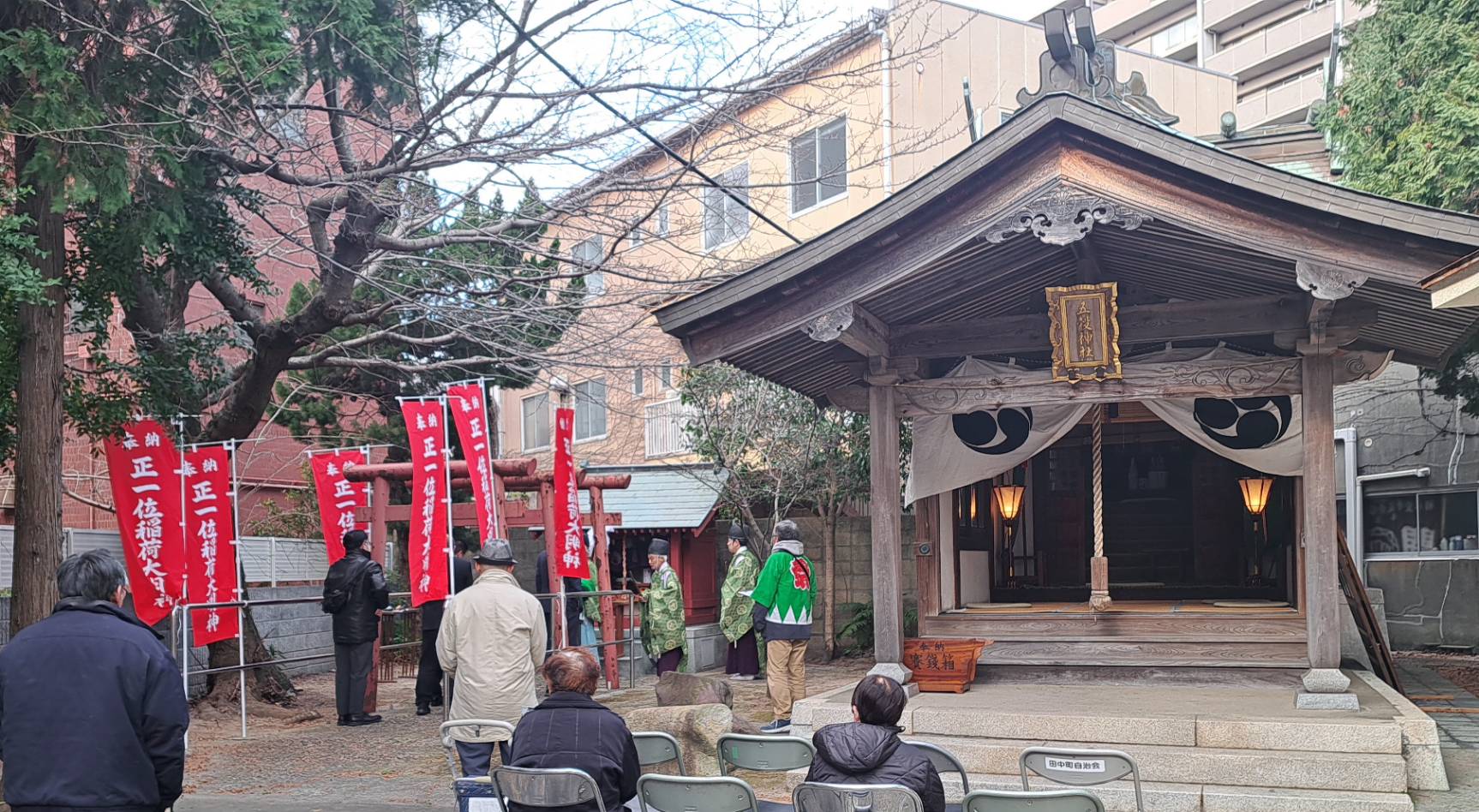 五穀神社・福寿稲荷神社初神楽 午前11時より 両神社境内において新春初神楽が執行され参列させて頂き、中部地区社会福祉協議会長として年末のふれあい餅つきを始め昨年の諸行事へのご協力を謝すと共に、市議会議員として本年の見通し等についてお話しさせて頂きました