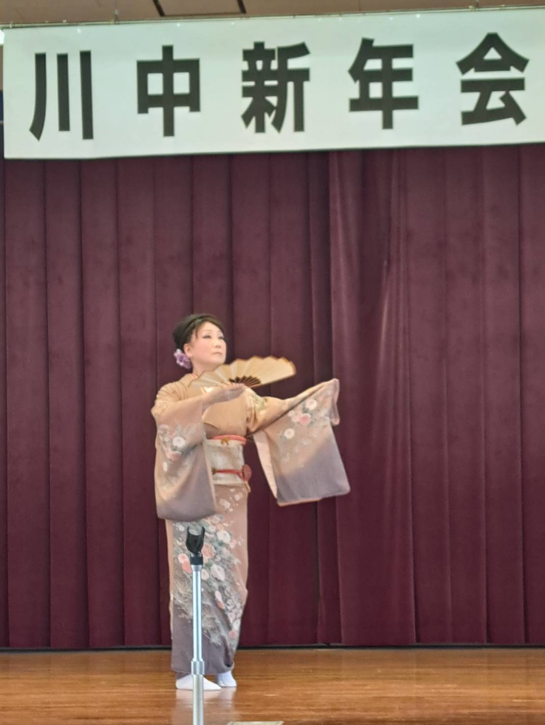 12時半より 川中公民館において川中地区新春互礼会が開催され参列。平家太鼓に始まり新春祝舞(日本舞踊)の後自治連合自治会長、総務大臣衆議院議員 林芳正令夫人 林裕子様、塩満久雄 山口県議会議員に続いて 新春のご挨拶をさせて頂き地域の自主防災、安全・安心のまちづくり等についてお話しさせて頂きました。